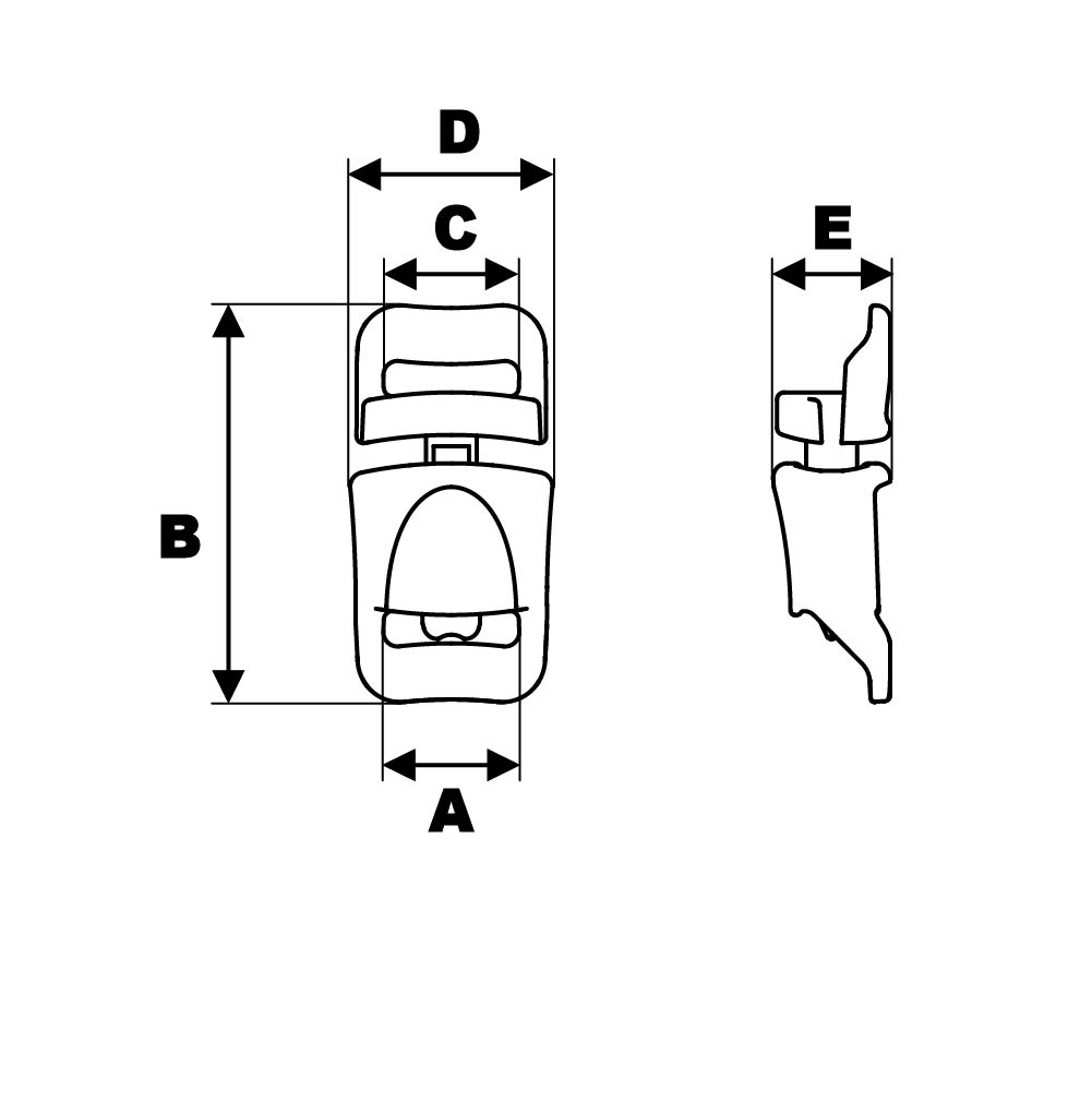 | Evo Inline CL with Tether | 303-0200 | 303-1210 | Acetal/Steel | Black | 9.5 | 28.0 | 9.5 | 14.3 | 8.3 |